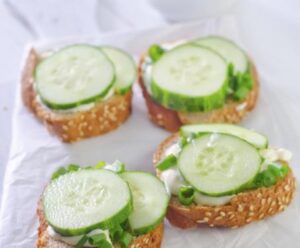 Taglia i cetrioli in fettine, prendi del formaggio fresco spalmabile e delle fette di salmone affumicato.